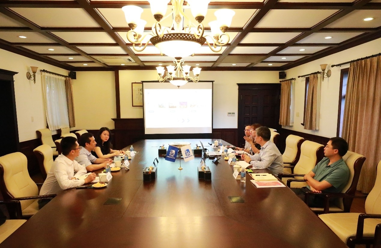 Haisum's CPC Committee Secretary and Company Chairman Zhao Guoang expressed warm welcome and heartfelt thanks to Deputy Chief Accountant of Poly Group Deng Changqing, and briefed about the overall situation of the Company and next steps of work. According to the report outline issued by the Group, the Chief Financial Officer and the Secretary of the Board of Directors Lin Lin introduced the development history, organizational structure, business segments, and the completion of production and operation of Haisum in detail, and made a key report on the company's capital management, overseas capital management, capital concentration and financing.