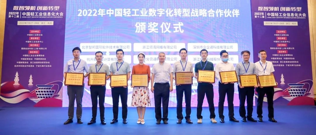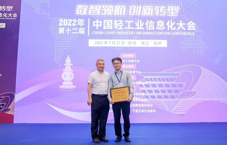 From July 27 to 28, the 12th China Light Industry Informatization Conference in 2022 with the theme of "Digital Intelligence Leading Innovation and Transformation" was held in Hangzhou, with more than 400 government representatives, industry experts, enterprise elites and other honored guests attending the conference. At the event, China Haisum and its subsidiary China GDE Engineering Co., Ltd. (hereinafter referred to as GDE) were awarded the title of Advanced Unit in the Digital Transformation of China's Light Industry; Pan Zhixiang, general manager of the EIM Digital Innovation Center at the headquarters, and Luo Jun, chairman of the GDE, were given the title of Advanced Individual in the Digital Transformation of China's Light Industry!