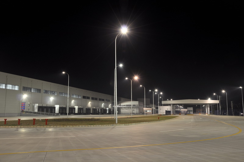 The project is a modern logistics park. The floor area of the warehouse is 61,000 m2. It features seven-tier rack. The design features rain recovery system, solar energy hot water system, intermediate water system, ground source heat pump system, solar energy street light system, indoor illumination control system, solar power system in some area, etc. It is a model logistics park incorporated with green and environment-protection ideas.
