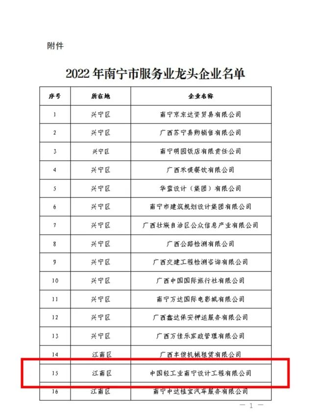 · 南寧公司榮獲2022年“南寧市服務業龍頭企業”稱號