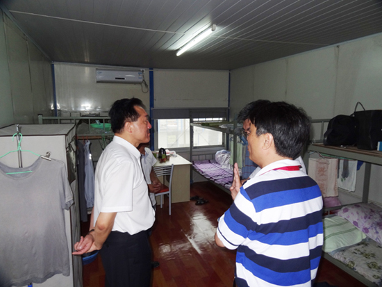 公司領導們每到一處,都查看了施工進展和現場管理的情況,與現場員工親切座談,詢問了解大家的工作、生活情況,對他們所做的工作和良好的精神狀態予以了充分肯定,并送上了毛巾、防蚊液、洗浴露等防暑降溫用品,在炎炎夏日里給辛苦工作的員工送上一份清涼,也把公司對一線員工的關心和愛護送到他們的心坎上。同時領導們鼓勵大家要繼續發揚不畏艱苦、連續作戰的精神,把工作做好,反復強調要重視防范風險、注意生產安全。