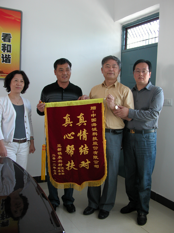 翁副書記一行在對永興村這幾年的發(fā)展表示欣慰的同時也鼓勵永興村通過擴(kuò)大生產(chǎn)、開發(fā)農(nóng)業(yè)基地等方式形成自己的“造血系統(tǒng)”,加快自身發(fā)展速度。接著,翁副書記還代表公司黨委向永興村貧困黨員送上了慰問金,并表示:海誠黨委將繼續(xù)把城鄉(xiāng)互聯(lián)、結(jié)對共建作為深化學(xué)習(xí)實踐活動、服務(wù)科學(xué)發(fā)展的重要任務(wù),把結(jié)對幫扶做好、做實、做強(qiáng),探索城鄉(xiāng)結(jié)對共建的新途徑,力爭在互聯(lián)中彰顯真情,通過結(jié)對共建產(chǎn)出碩果,繼續(xù)為推動城鄉(xiāng)經(jīng)濟(jì)社會和基層黨建工作統(tǒng)籌協(xié)調(diào)發(fā)展做出積極貢獻(xiàn)。