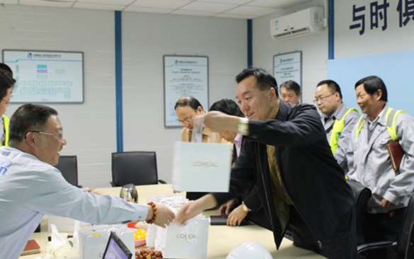 現場參觀結束后,在臨時會議室,嚴總裁又重點針對現場施工管理、分包協調、采購控制程序、設計協調及常駐現場實時解決現場施工問題與施工管理人員進行了詳細的交流。并給出了一個評語“工地次序井然,施工合作界面清晰,員工精神面貌好”及五點希望:1、希望大家再接再厲,做最后的沖刺;2、希望本項目可以得到有關獎項;3、希望現場的設計團隊能夠珍惜現場鍛煉機會,多多學習,提升設計水平;4、希望施工環節要更嚴密,更緊湊,更積極;5、希望團隊各成員要互相合作,多多包容,不要互相指責和推諉。