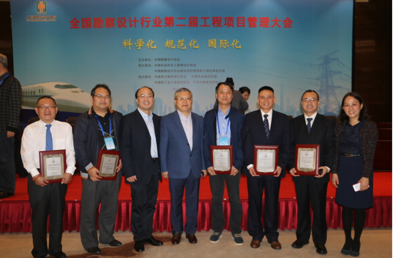 由中國勘察設(shè)計(jì)協(xié)會主辦,中國石油和化工勘察設(shè)計(jì)協(xié)會和中國勘察設(shè)計(jì)協(xié)會建設(shè)項(xiàng)目管理和工程總承包分會聯(lián)合承辦的“全國勘察設(shè)計(jì)行業(yè)第二屆工程項(xiàng)目管理大會”,于2017年10月10日-11日在北京隆重召開。國家住建部工程質(zhì)量安全監(jiān)管司、中國勘察設(shè)計(jì)協(xié)會及各行業(yè)勘察設(shè)計(jì)協(xié)會的領(lǐng)導(dǎo)、全國各行業(yè)工程公司的負(fù)責(zé)人以及獲獎項(xiàng)目經(jīng)理約300多人出席了會議。中國海誠股份徐大同總裁率領(lǐng)獲獎項(xiàng)目的項(xiàng)目經(jīng)理應(yīng)邀參加了會議。
