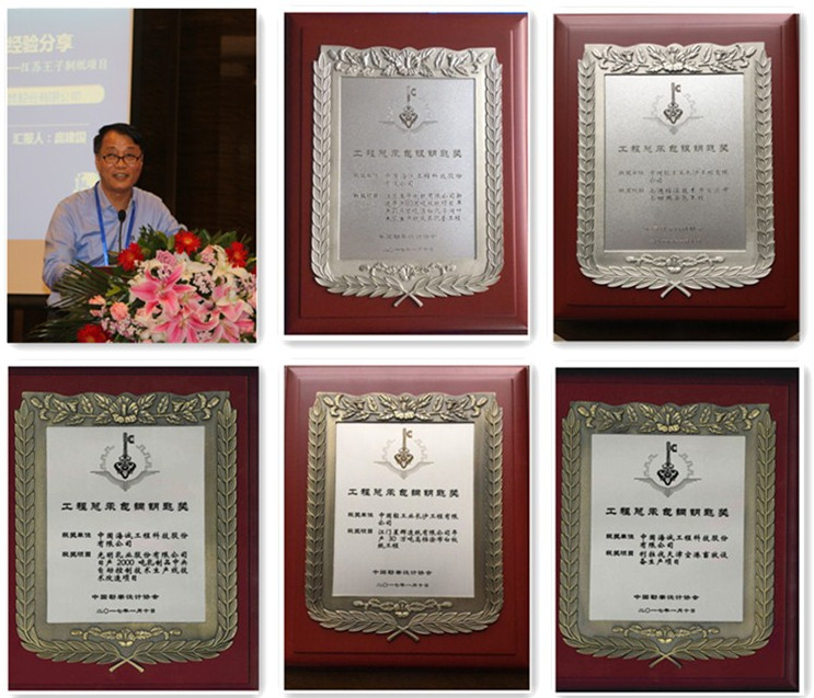 大會還對榮獲第八屆全國勘察設(shè)計(jì)行業(yè)優(yōu)秀工程項(xiàng)目管理和優(yōu)秀工程總承包項(xiàng)目的團(tuán)隊(duì)代表進(jìn)行了頒獎。海誠股份共有5個項(xiàng)目獲獎。其中:海誠股份承接的江蘇王子制紙有限公司新建年產(chǎn)80萬噸版紙項(xiàng)目 年產(chǎn)71.4萬噸漂白化學(xué)闊葉木漿生產(chǎn)線及其配套工程、長沙子公司承接的南通經(jīng)濟(jì)技術(shù)開發(fā)區(qū)中水回用示范工程項(xiàng)目被授予工程總承包銀鑰匙獎;海誠股份承接的光明乳業(yè)股份有限公司日產(chǎn)2000噸乳制品中央自動控制技術(shù)生產(chǎn)線技術(shù)改造項(xiàng)目、利拉伐天津空港畜牧設(shè)備生產(chǎn)項(xiàng)目和長沙子公司承接的江門星輝造紙有限公司年產(chǎn)30萬噸高檔涂布白版紙工程被授予銅鑰匙獎。王子項(xiàng)目項(xiàng)目經(jīng)理龐建國、光明項(xiàng)目項(xiàng)目經(jīng)理馮毅、天津利拉伐項(xiàng)目項(xiàng)目經(jīng)理呂偉良、黃自力,南通中水回用工程和江門星輝項(xiàng)目項(xiàng)目經(jīng)理胡正陽和吳鳴分別上臺領(lǐng)獎。