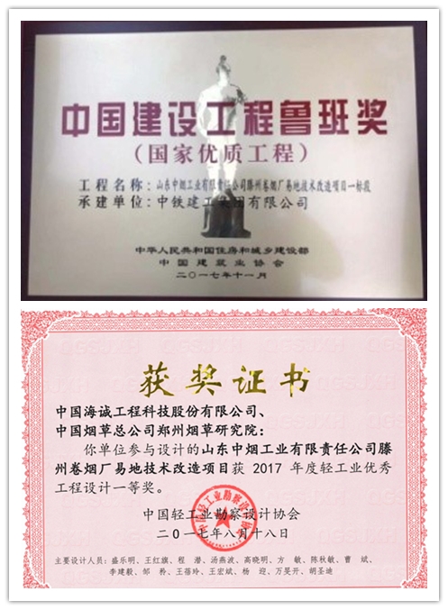 2017年10月31日,中華人民共和國住房和城鄉建設部、中國建筑業協會公布了“2016~2017年度(國家優質工程)”評選結果,由我公司承擔設計的山東中煙工業有限責任公司滕州卷煙廠易地技術改造項目一標段聯合工房榜上有名。