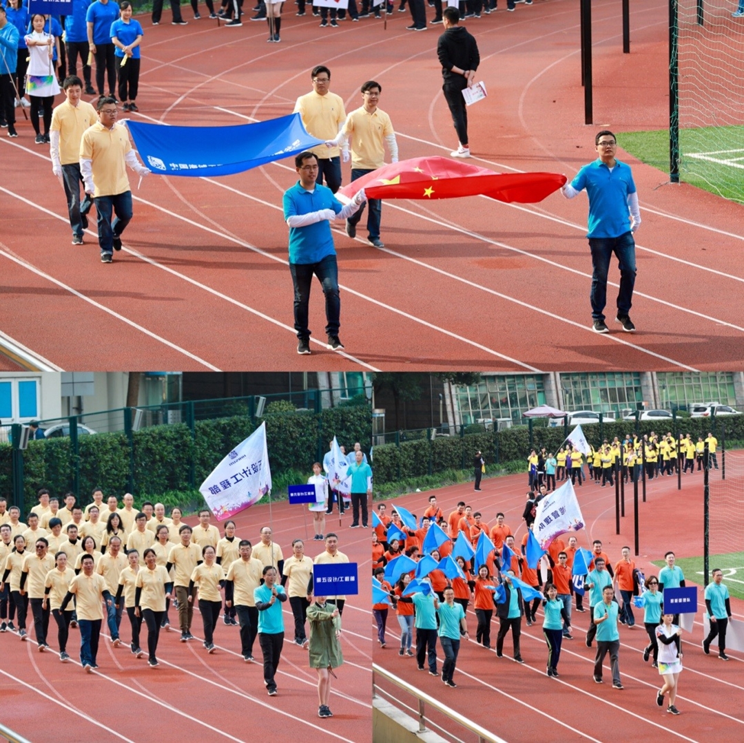 上午9時,運動會開幕式準時開始。伴隨著運動員進行曲,由本部干部、員工組成的8支代表隊方陣,以整齊的著裝、抖擻的精神列隊經過大會主席臺。他們以各自不同的隊形和口號展示了海誠人自強不息、奮發向上的精神風貌,贏得了在場一陣又一陣熱烈的掌聲。