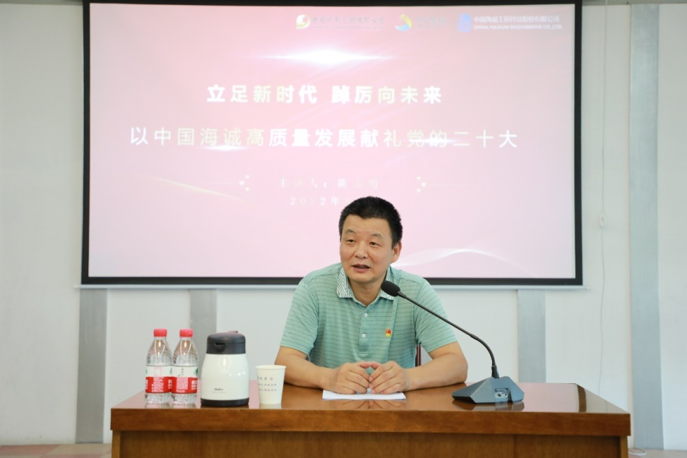 7月18日,公司黨委委員、財務(wù)總監(jiān)兼董事會秘書林琳為廣州公司黨委班子、中層及以上黨員干部、第七黨支部黨員等講授專題黨課。黨課圍繞十八大以來黨和國家事業(yè)歷史性、根本性變革和成就,現(xiàn)階段國際國內(nèi)新形勢、新要求,以及中國海誠“十四五”發(fā)展時期新征程、新作為等內(nèi)容展開,激勵全體黨員要踔厲奮發(fā)、篤行不怠,以更加堅定的自信、更加堅決的勇氣,努力開創(chuàng)公司高質(zhì)量發(fā)展的新局面,以實際行動迎接黨的二十大勝利召開!