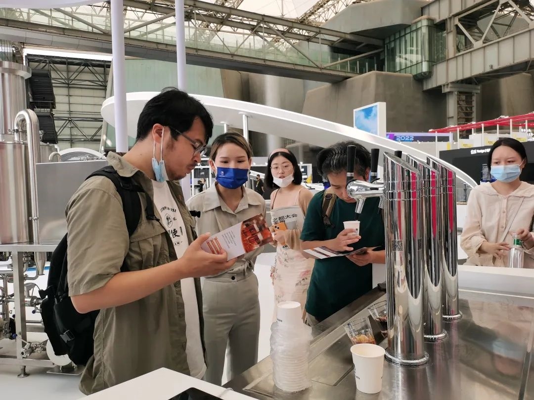 觀眾一邊品嘗白啤、黃啤、黑啤等多種精釀啤酒,一邊學(xué)習(xí)關(guān)于精釀啤酒設(shè)備、釀造工藝等知識(shí),“海誠(chéng)精釀”成為了展會(huì)活動(dòng)中人氣最旺的展區(qū)之一。