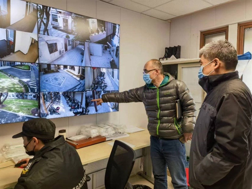 趙國昂一行到各部門和單位進(jìn)行了慰問,查看了門衛(wèi)室、食堂、計(jì)算機(jī)房、配電房、寶輕大廈、品牌館等部位的安全措施落實(shí)情況,對園區(qū)監(jiān)控、煤氣、電源、電梯、消防通道等作了重點(diǎn)檢查和提醒。同時(shí)對節(jié)前堅(jiān)守崗位的員工們致以新春佳節(jié)的問候,叮囑大家節(jié)日期間注意個(gè)人防護(hù),維護(hù)健康;要求相關(guān)負(fù)責(zé)人、值班人員高度重視節(jié)日期間安全工作,切實(shí)消除各類隱患,護(hù)航公司春節(jié)期間安全平穩(wěn)運(yùn)行。