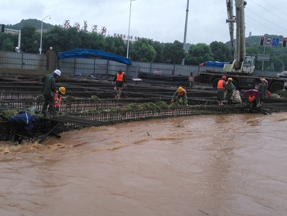 類似的場景也發(fā)生在湘府路河西高架橋項目部,該項目部剛剛進場,尚未正式動工。接到湘江新區(qū)管委會關(guān)于靳江河告急的搶險通知后,也立即全員出動積極投入抗洪戰(zhàn)斗,保衛(wèi)家園。