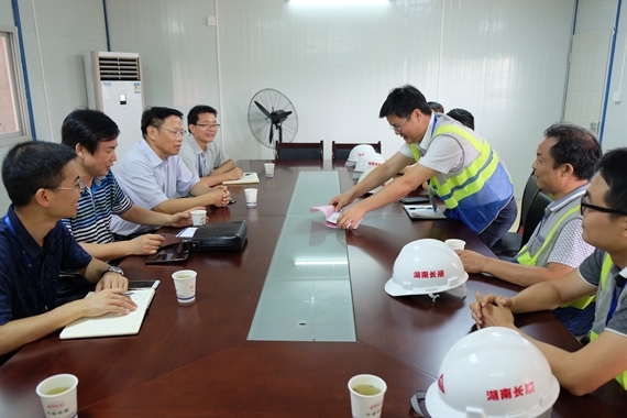 7月4日,氣溫陡升,酷暑難耐。長沙公司黨委副書記、副總經(jīng)理、長順公司董事長潘祥明等一行代表工程公司領(lǐng)導層、公司工會到達長沙地鐵3號線、瀏陽河人行景觀橋等抗洪救災前線項目部進行慰問。受暴雨影響,長沙多處封路,車輛禁行,潘總等頂著烈日徒步數(shù)里走進各工程現(xiàn)場,檢查防汛措施落實情況。