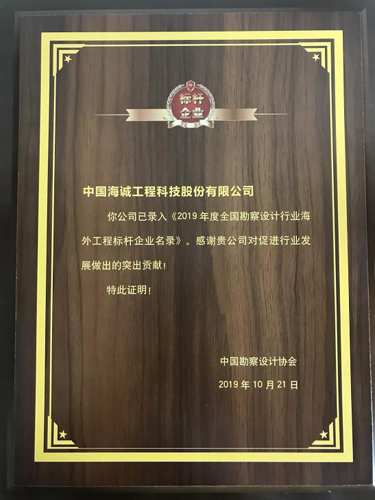 10月21日,中國勘察設計協(xié)會公布了“海外工程標桿企業(yè)”評選結(jié)果,中輕集團海誠股份入選《2019年度全國勘察設計行業(yè)海外工程標桿企業(yè)名錄》,成為海外工程標桿企業(yè)。
