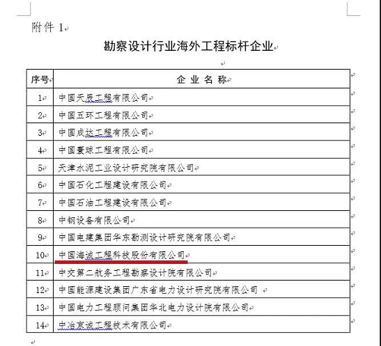 “海外工程標桿企業(yè)”是中國勘察設計協(xié)會為表彰在海外市場開拓中取得優(yōu)異成績的企業(yè)而設立,本次有14家企業(yè)入圍名錄,是從全國兩萬四千多家勘察設計單位中擇優(yōu)選出的。