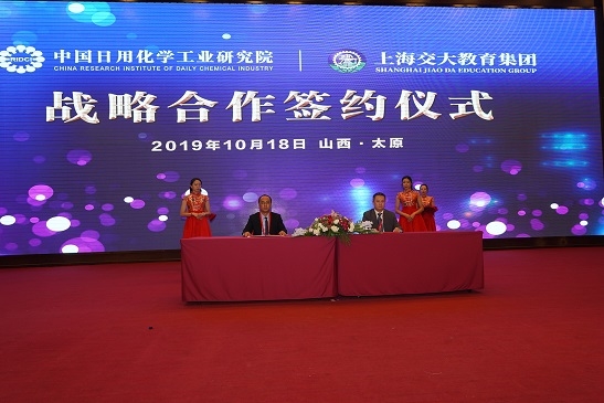 論壇期間,日化院還和上海交大教育集團簽署戰略合作儀式,雙方將強強聯合設立“中國日化高級研修學院”,面向中國日化行業開展高層次人才培訓。這是雙方認真貫徹落實近期國家發展改革委、教育部等6部門印發《國家產教融合建設試點實施方案》的具體舉措,以促進高等教育和日化行業發展交叉滲透、相互融合,為日化行業高質量發展提供堅實的人才支撐。