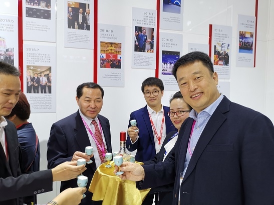 郭建全一行參觀展會,與食品院有技術合作的五糧液、酒鬼酒、國臺酒、釣魚臺酒、秦含章酒、梁大師等企業負責人深入溝通服務合作。