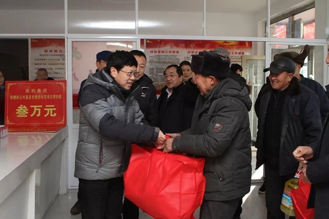 “感謝保利集團和中輕集團對我們的關(guān)懷和捐贈!”在喀喇沁旗河北街道辦事處進行的“愛在喀喇沁 扶貧送溫暖”2020年春節(jié)捐贈儀式上,當新丘村支部書記王有良、村長郭瑞東分別從王珂靈、陳曉麗手中接過黨員活動室建設(shè)幫扶款、春節(jié)慰問物資的時候,他們發(fā)自肺腑地表示感謝,并向保利集團贈送了寫著“深入基層,精準扶貧,情系百姓,溫暖人心”的錦旗。三萬元的黨員活動室建設(shè)經(jīng)費,可以讓村里的黨員能夠擁有一個更好的學(xué)習(xí)活動場所;捐贈給全村70歲以上老人和所有貧困戶的糧、油、棉被等生活用品,則能夠切實改善他們的生活。