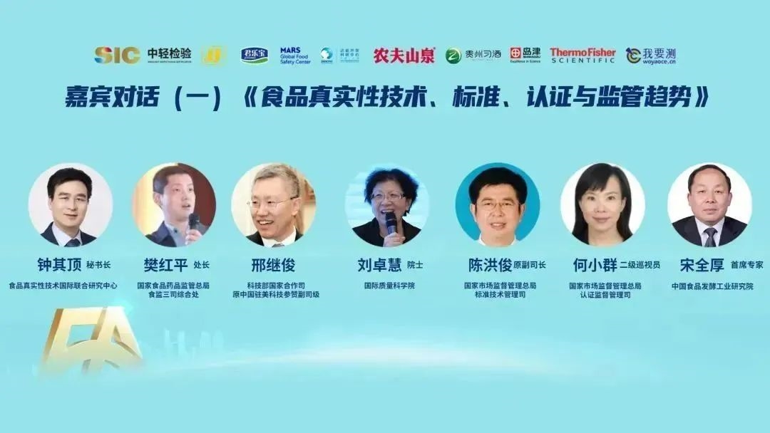 在嘉賓對話環節,國家質量監督檢驗檢疫總局原總工程師、中國防偽行業協會理事長劉卓慧,國家市場監督管理總局標準技術管理司原副司長(正司級)陳洪俊,國家市場監管總局特殊食品安全監管司副司長樊紅平,科技部國際合作司、原中國駐美科技參贊邢繼俊,國家市場監督管理總局認證監督管理司二級巡視員何小群、中國食品發酵研究院首席專家宋全厚教授圍繞“食品真實性技術、標準、認證與監管趨勢”主題,分別從國家質量基礎設施建設、食品質量標準體系建設、高品質認證、保健食品監管趨勢、國際科技合作、食品真實性檢測和認證等方面進行討論,并達成共建食品真實性產業生態科學共識。