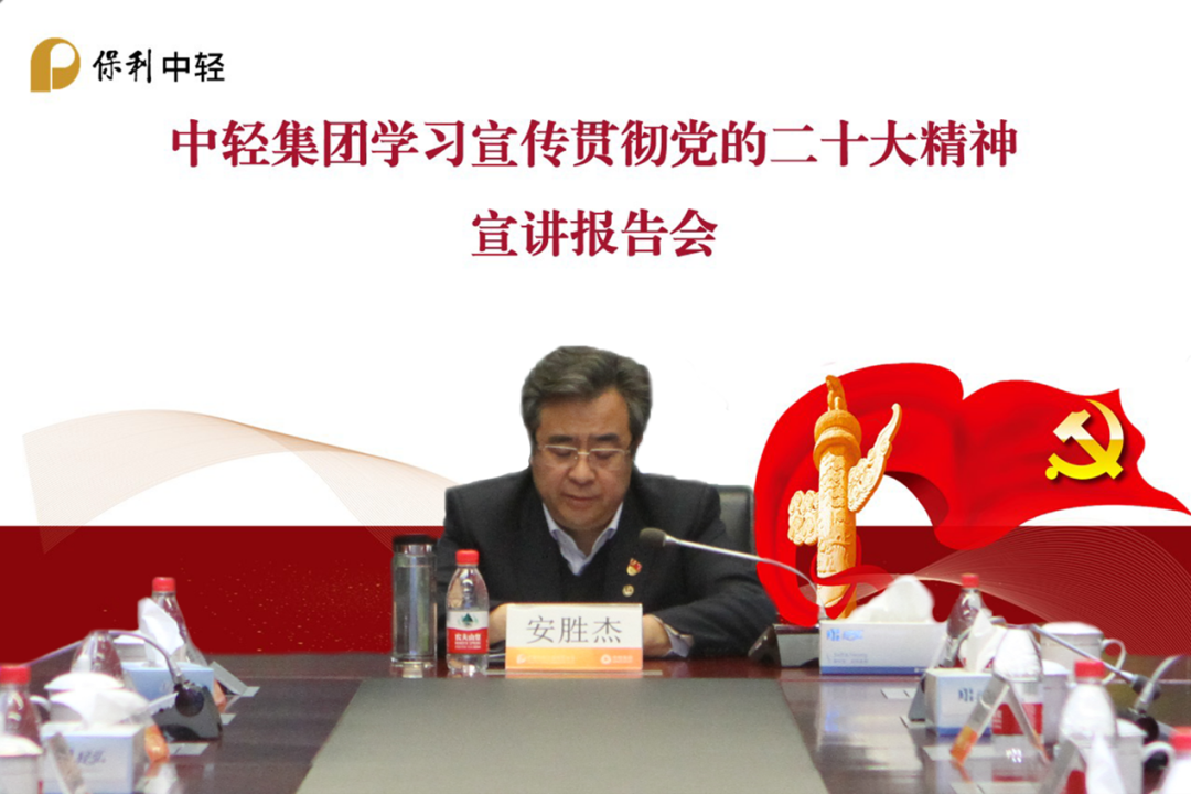 學習宣傳貫徹黨的二十大精神是保利中輕當前和今后一個時期的首要政治任務,為深入推動黨的二十大精神在保利中輕直達基層、直通一線,12月28日下午,保利中輕黨委舉辦學習宣傳貫徹黨的二十大精神宣講報告會。保利中輕黨委書記、董事長安勝杰以《深入學習宣傳貫徹黨的二十大精神 加快建設世界一流科技企業》為題為全體黨員干部員工進行宣講暨學習黨的二十大精神專題黨課。會議由保利中輕副總經理、總會計師段趙清主持。