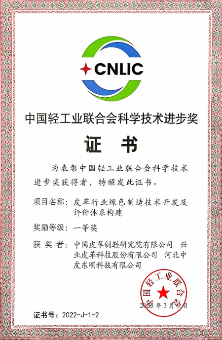 該項目針對制革行業生產過程中產生的含鉻固廢開發資源化利用技術及成套設備,實現固廢的高值化利用,有效降低制革企業含鉻危廢排放量,相關技術及成套設備已實現工業化應用。基于制革行業的特點,構建制革行業的綠色制造評價體系,為皮革行業實現國家的雙碳戰略提供理論和方法依據,有效提升制革行業綠色制造水平。