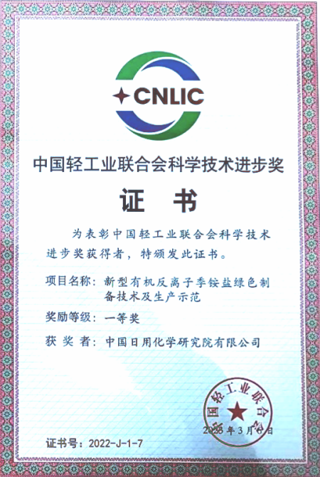 該項目以綠色化工原料碳酸二甲酯替代傳統有毒有害季銨化劑,成功開發清潔綠色的季銨鹽制備工藝技術,并以此為基礎,合成構建多種結構有機反離子季銨鹽,推動季銨鹽產品多樣性發展、新型制備工藝開發和季銨鹽高效高值化利用,在醫藥、電子等特殊領域具有極大應用價值。