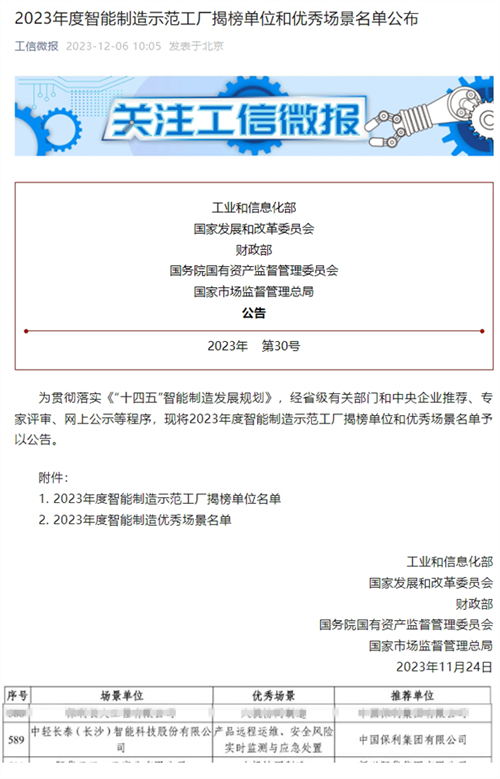 祝賀!保利中輕所屬中輕長泰成功入選國家2023年度智能制造優(yōu)秀場景名單