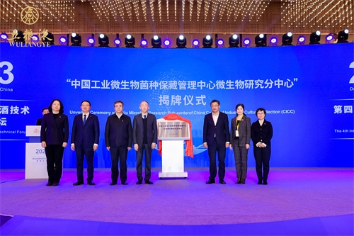 開幕式上,中國食品發酵工業研究院與宜賓五糧液股份有限公司共建的“中國工業微生物菌種保藏管理中心白酒微生物研究分中心”揭牌儀式順利舉行,保利中輕副總經理,中國食品發酵工業研究院黨委書記、董事長肖丹與宜賓五糧液股份有限公司總工程師楊韻霞共同揭牌。安勝杰與中國酒業協會理事長宋書玉,農業農村部中國農村技術開發中心副主任張松梅,五糧液集團(股份)有限公司黨委書記、董事長曾從欽,中國工程院院士、江南大學校長陳衛共同見證。“中國工業微生物菌種保藏管理中心白酒微生物研究分中心”是按照國家標準菌種資源庫組建的白酒行業最大的菌種保藏平臺,該平臺現已收藏五糧液釀造微生物菌種400余種、1000余株、20000余份備份,為五糧液乃至中國白酒技術創新及生產應用提供全面的菌種資源。