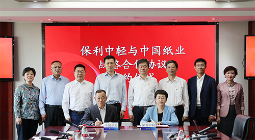 4月23日,中國輕工集團有限公司(以下簡稱保利中輕)與中國紙業投資有限公司(以下簡稱中國紙業)在保利中輕總部就進一步深化合作座談交流并簽署戰略合作協議。保利中輕黨委副書記、總經理趙國昂;保利中輕副總經理,中國造紙院黨委書記、董事長孫波;中國紙業黨委書記、董事長鐘天崎,副總經理曹衛良、謝先龍,總經理助理、總工程師單立偉出席簽約儀式。