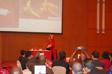 聯(lián)歡會上,由中食院工會牽頭組織的來自院科技發(fā)展部、物業(yè)部、財務部和食品、發(fā)酵、國際合作等各部門工作人員表演的扇子舞及變臉、茶藝、抖空竹等節(jié)目精彩紛呈,博得了全場觀眾的陣陣掌聲。學員們也通過自編自演的節(jié)目表達了對主辦單位、承辦單位的感激之情和中國人民的深厚情誼。商務部、集團公司和院領導主持的現(xiàn)場抽獎活動將晚會推向高潮,2個小時的晚會在熱烈友好的氣氛中圓滿結(jié)束。