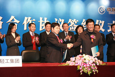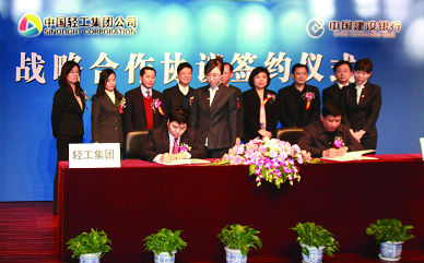 2月1日,中國輕工集團公司與中國建設銀行股份有限公司北京市分行50億元戰略合作協議簽約儀式在北京隆重舉行,集團公司總經理陳鄂生、建行北京分行行長王軍分別代表各自企業出席儀式并簽署了戰略合作協議。雙方還將在資金結算、資金管理平臺、財務顧問服務以及其他金融服務等方面深化合作,這標志著雙方的合作將邁上更高的臺階。集團公司副總經理俞海星、集團公司總會計師郭建全以及建行北京分行副行長龔毅、宣武支行行長劉發猛出席簽約儀式。