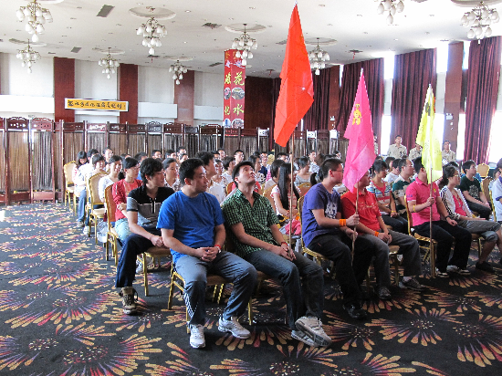 11日上午,全體參訓隊員滿懷熱情地抵達了此次專題活動駐地——北京花水灣磁化溫泉度假村。各位隊員被隨機分成了五組,并分別創建各自的隊名、隊旗、隊歌及隊訓,選舉產生隊長、旗手、安全員等。“斧頭幫”、“烈焰隊”、“中青至勝”、“大黃蜂”、“飛虎隊”五個組的隊員信心十足,高呼著各自的隊訓,在專業培訓師的指導下開始了充滿挑戰和協作的拓展活動。