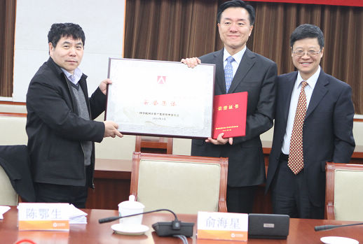 2月25日下午,集團公司董事長、黨委書記陳鄂生,集團公司總經理俞海星向海誠股份公司總裁嚴曉儉頒了獎。