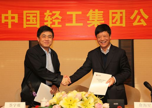 俞海星總經(jīng)理與集團(tuán)公司副總經(jīng)理兼中國(guó)造紙裝備公司總經(jīng)理馬思一簽訂責(zé)任書(shū)