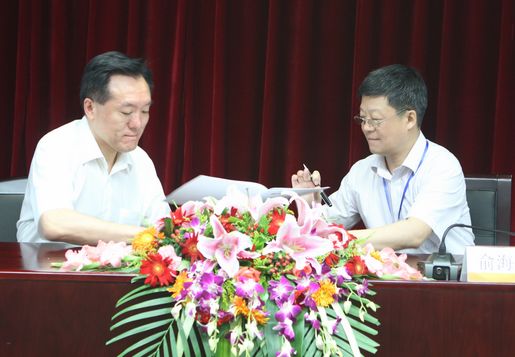 集團(tuán)公司總經(jīng)理俞海星與食品發(fā)酵院院長蔡木易簽訂任務(wù)合同書
