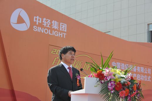 陳鄂生董事長代表中輕集團(tuán)致辭。他向出席啟動(dòng)儀式的各位領(lǐng)導(dǎo)、各位專家、全國的優(yōu)秀企業(yè)家們表示熱烈的歡迎和衷心的感謝。他指出,永清基地的生產(chǎn)啟動(dòng),為集團(tuán)公司裝備板塊實(shí)現(xiàn)跨越式發(fā)展打下了堅(jiān)實(shí)的基礎(chǔ),成為集團(tuán)打造新的產(chǎn)業(yè)價(jià)值鏈的關(guān)鍵一環(huán)。中國造紙裝備有限公司要緊緊抓住國家振興裝備制造業(yè)的關(guān)鍵機(jī)遇,憑借在造紙領(lǐng)域的科研、咨詢設(shè)計(jì)、總承包、工程化推廣及實(shí)施能力,整合國內(nèi)外優(yōu)質(zhì)資源,突破造紙裝備關(guān)鍵技術(shù)瓶頸,實(shí)現(xiàn)集成創(chuàng)新,為造紙企業(yè)提供具有性價(jià)比優(yōu)勢的先進(jìn)成套裝備和優(yōu)質(zhì)服務(wù),擔(dān)當(dāng)起振興民族造紙裝備工業(yè)的歷史使命。他預(yù)祝造紙裝備自主化集成(永清)基地的生產(chǎn)啟動(dòng)取得圓滿成功!
