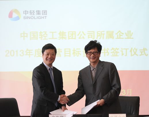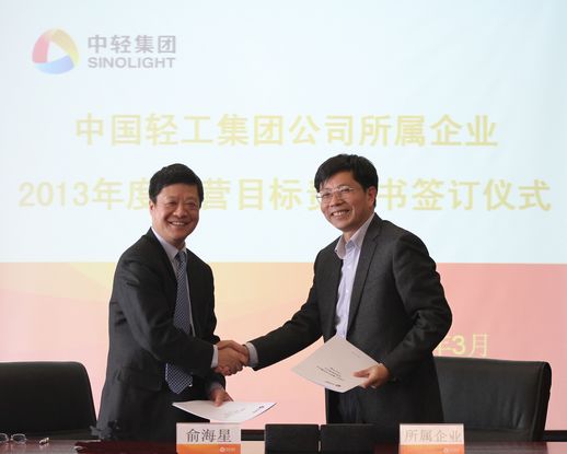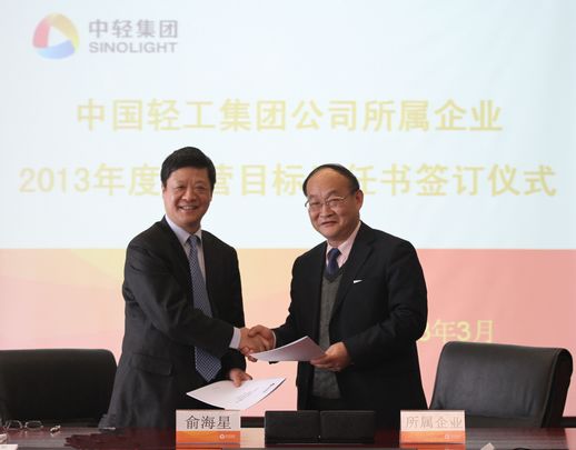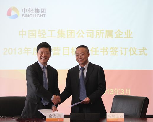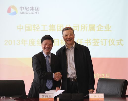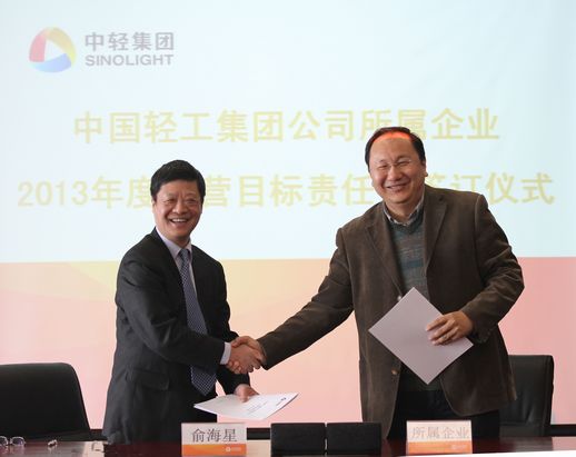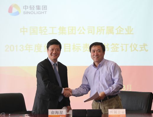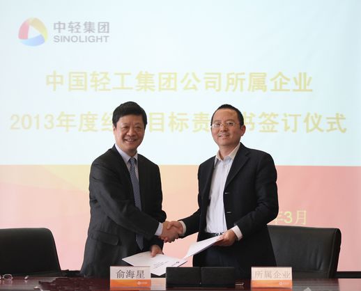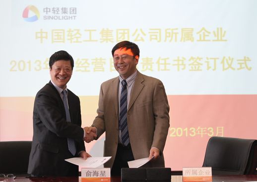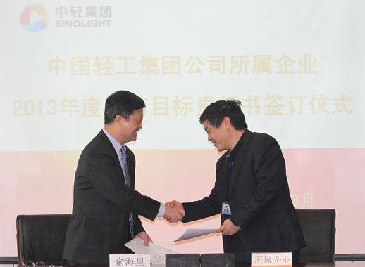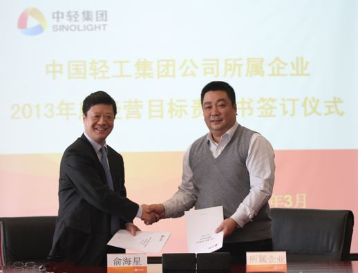 俞海星總經(jīng)理與中輕對外公司總經(jīng)理王向陽簽訂目標(biāo)責(zé)任書