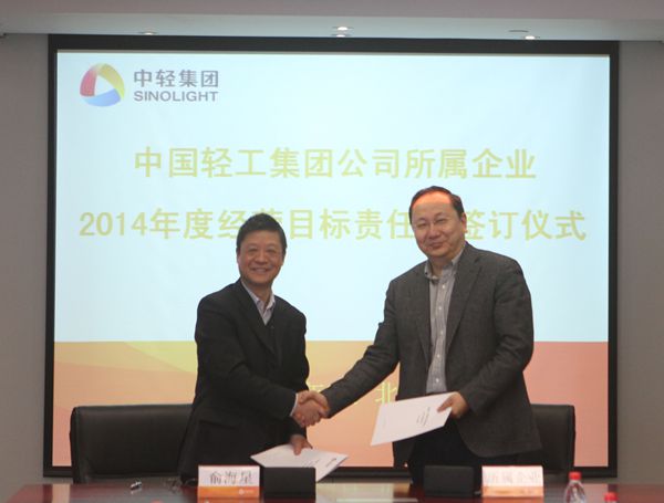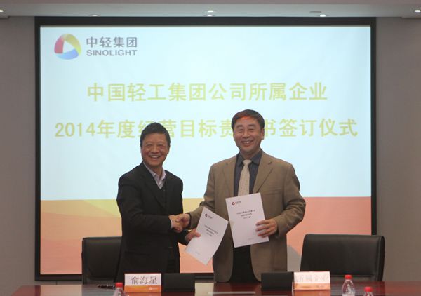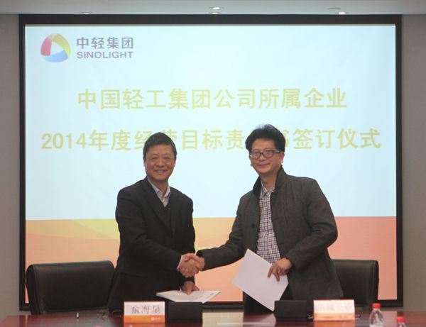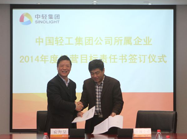 集團公司總經理俞海星與中輕物產公司總經理錢小林簽訂經營目標責任書