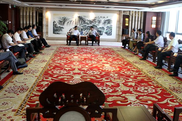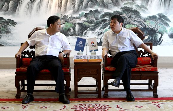 8月8日,中輕集團黨委書記、董事長陳鄂生在中輕大廈會見了荊門市委書記別必雄一行。
