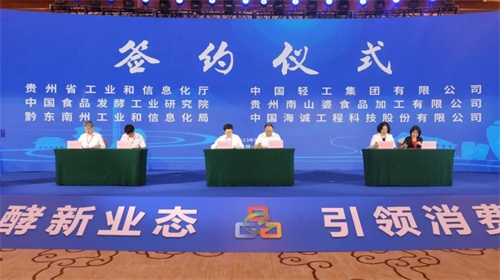 開幕式后,保利中輕與貴州省工業和信息化廳簽署戰略合作協議,中國食品發酵工業研究院與貴州南山婆集團簽署戰略合作協議,中國海誠與黔東南工業和信息化局簽署酸湯產業規劃合作協議。各方將通過省企合作,實現優勢互補,謀求更高層次、更寬領域、更多渠道的合作,建立產、學、研、用協同創新的長效合作機制,努力實現地方政府和央企的合作共贏、共同發展。