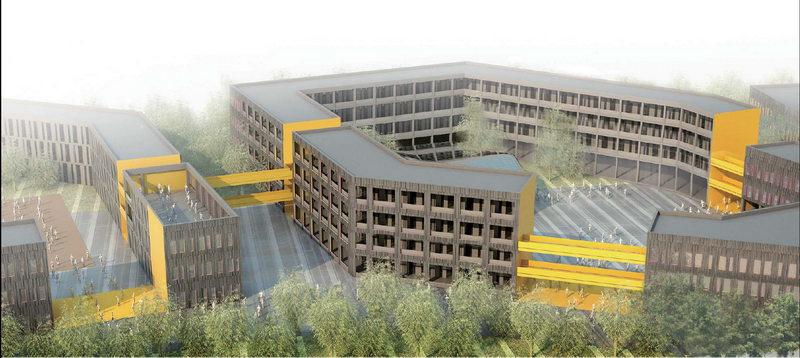 總用地面積28565.9平方米,總建筑面積14223.2平方米。本工程共包含教學樓、階梯教室、餐廳、體育館、變電所及門衛等六個單體。