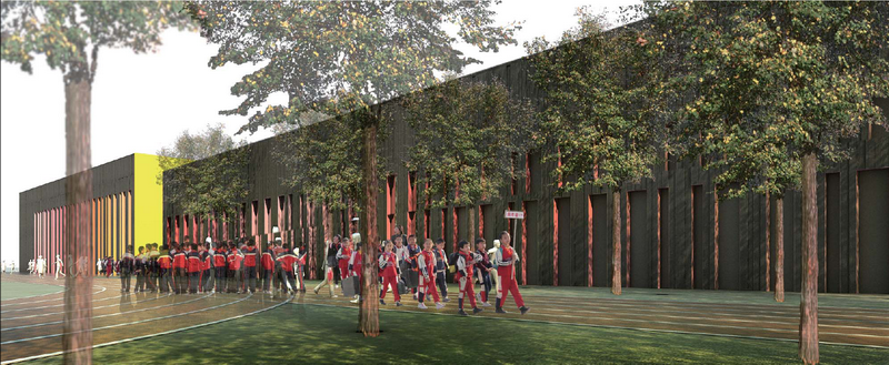 教學樓為局部四層,層高3.9m,建筑高度16.86m。階梯教室為單層建筑,局部設置夾層,建筑高度為8.150m。餐廳為二層建筑,層高5m,建筑高度為11.050m。體育館為單層建筑,局部設置夾層,建筑高度為11.015m。立面設計采用GRC掛板、玻璃及木材,力圖通過精致的細節設計,創造出精美的品質。