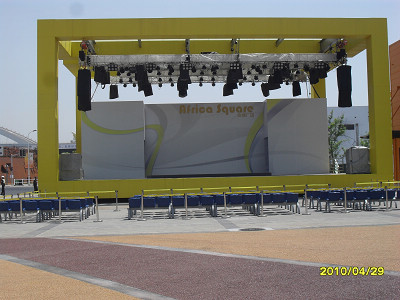 五大洲廣場為上海世博園區露天舞臺搭建工程,包括露天舞臺的輔助用房和露天舞臺,可舉辦各國各民族風情歌舞表演、大型戶外音樂會、演唱會、街頭演藝活動等。固定舞臺,每個250平方米,工作區用房面積180平方米。建筑面積均為一層,舞臺面積約為360 m2,最高高度為10.0米。上部結構形式為鋼結構構架,為世博園區臨時建筑。