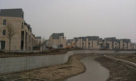 該項目總用地面積約為13.20萬平方米。其中規(guī)劃道路以西為B7地塊,基地面積約為8.93萬平方米。B8地塊位于規(guī)劃河道以東,基地面積約為4.27萬平方米,總建筑面積155132.48平方米,工程概算投資49058.4428萬元,共83棟單體(多棟3層聯(lián)體建筑及多棟3層單體建筑組成)。其中多棟3層聯(lián)體建筑與地下車庫連為一體。另有1棟配套商業(yè)用房,商業(yè)用房地上3層+地下一層,地下一層為人防地下室
